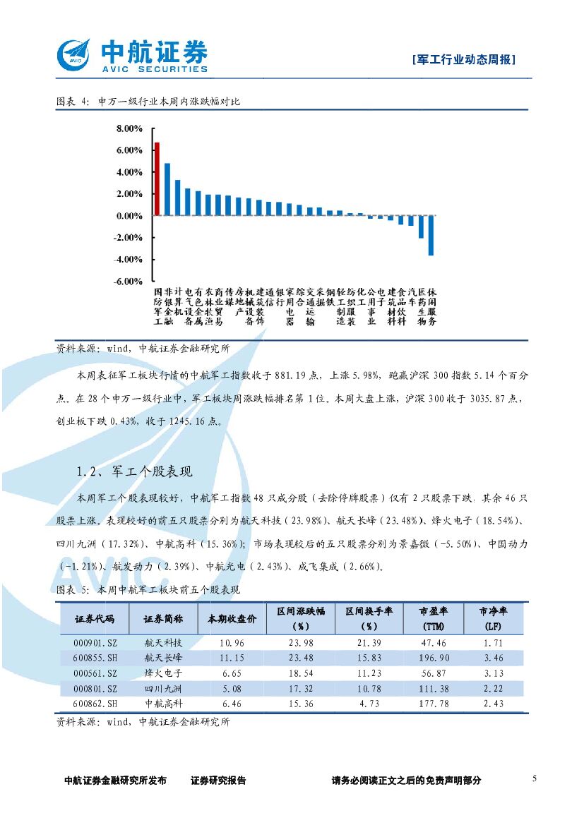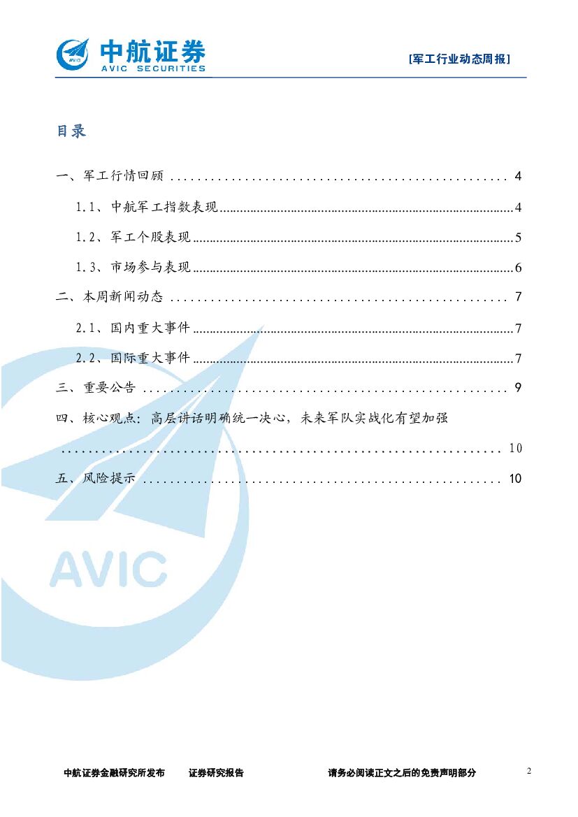 中航证券:军工行业动态周报:高层讲话明确统一决心,未来军队实战化有望加强.pdf