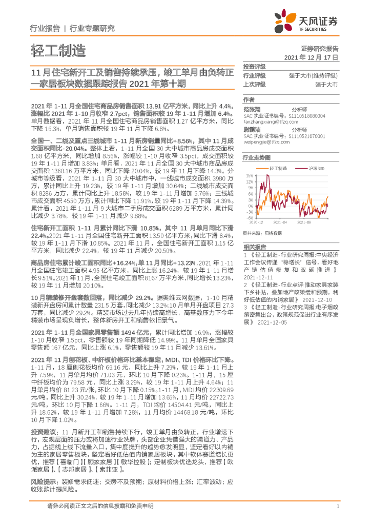 天风证券:轻工制造行业专题研究:11月住宅新开工及销售持续承压,竣工单月由负转正.pdf