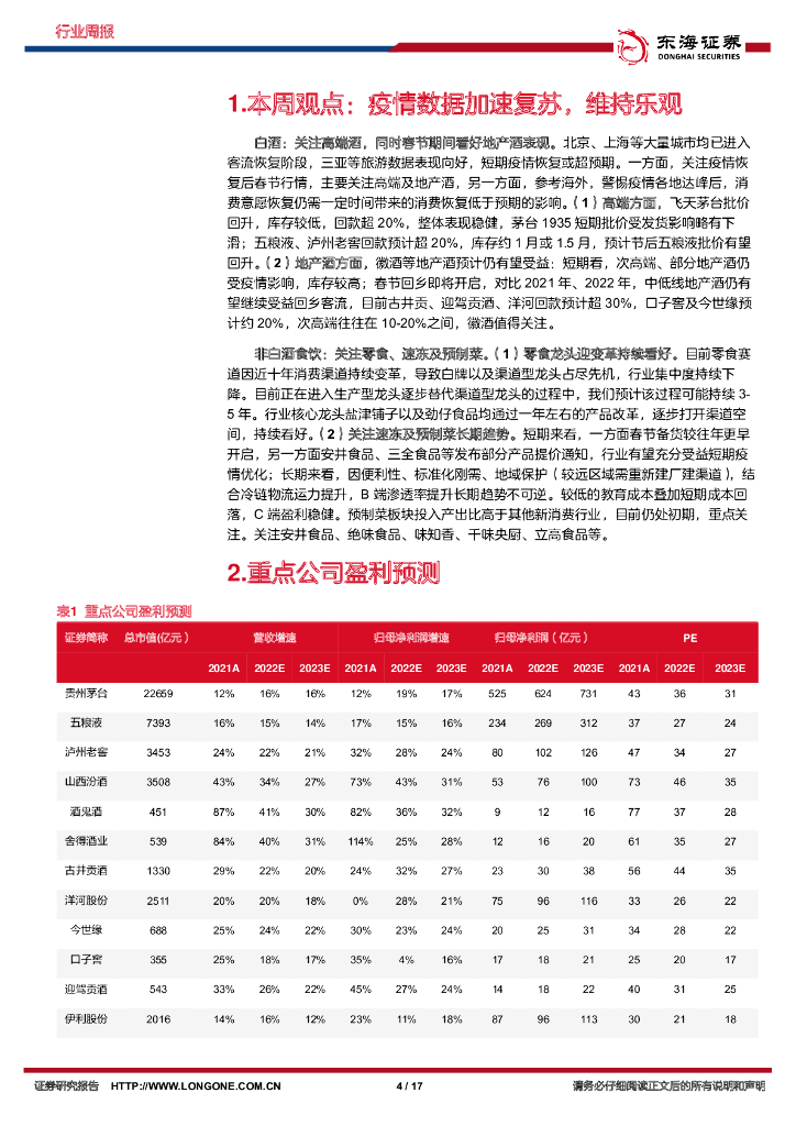 东海证券:食品饮料行业周报:疫情数据加速复苏,维持乐观.pdf