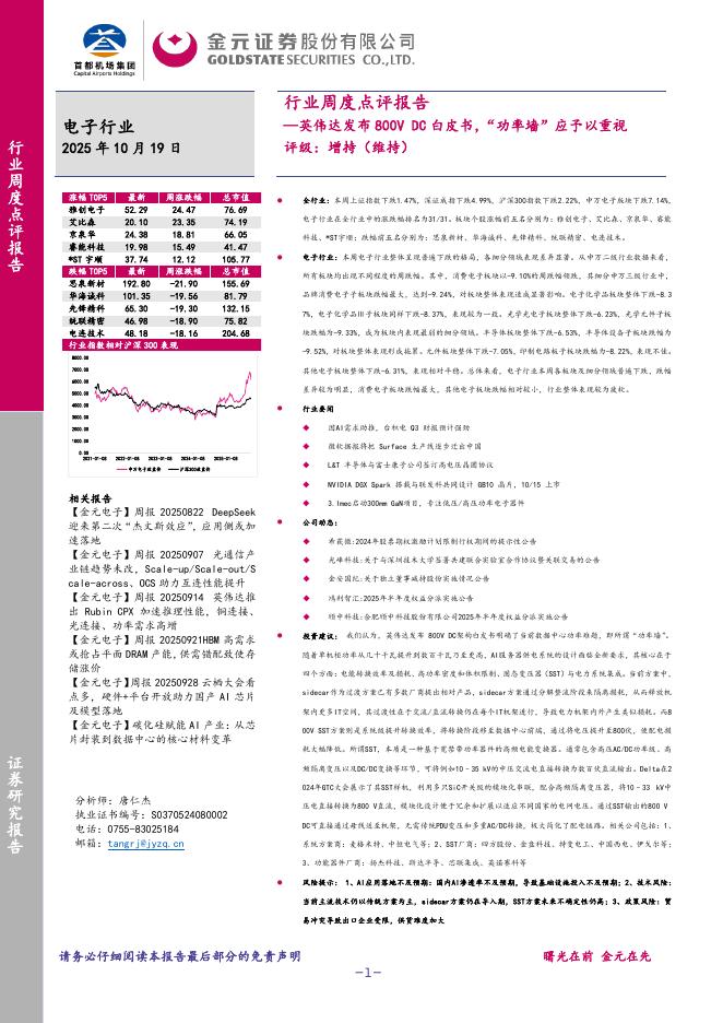 金元证券:电子行业周度点评报告:英伟达发布800VDC白皮书,“功率墙”应予以重视.pdf