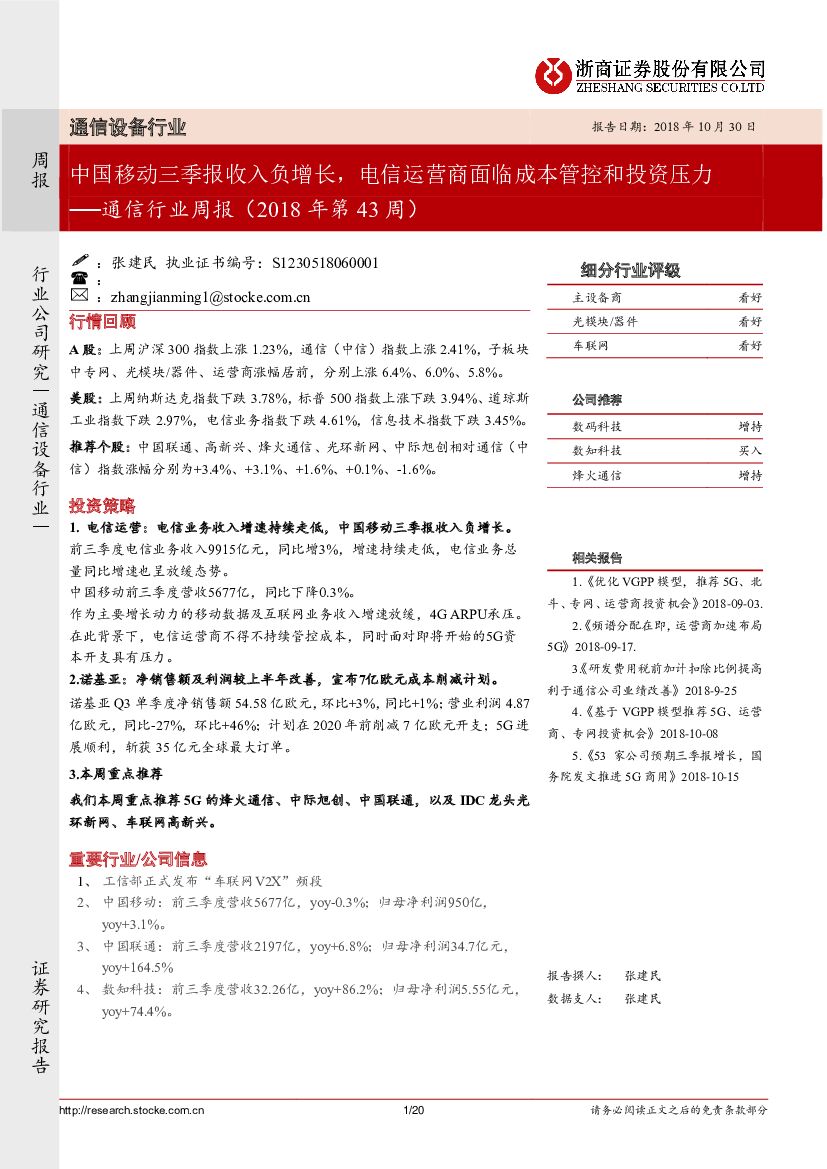 浙商证券:通信行业周报:中国移动三季报收入负增长,电信运营商面临成本管控和投资压力.pdf