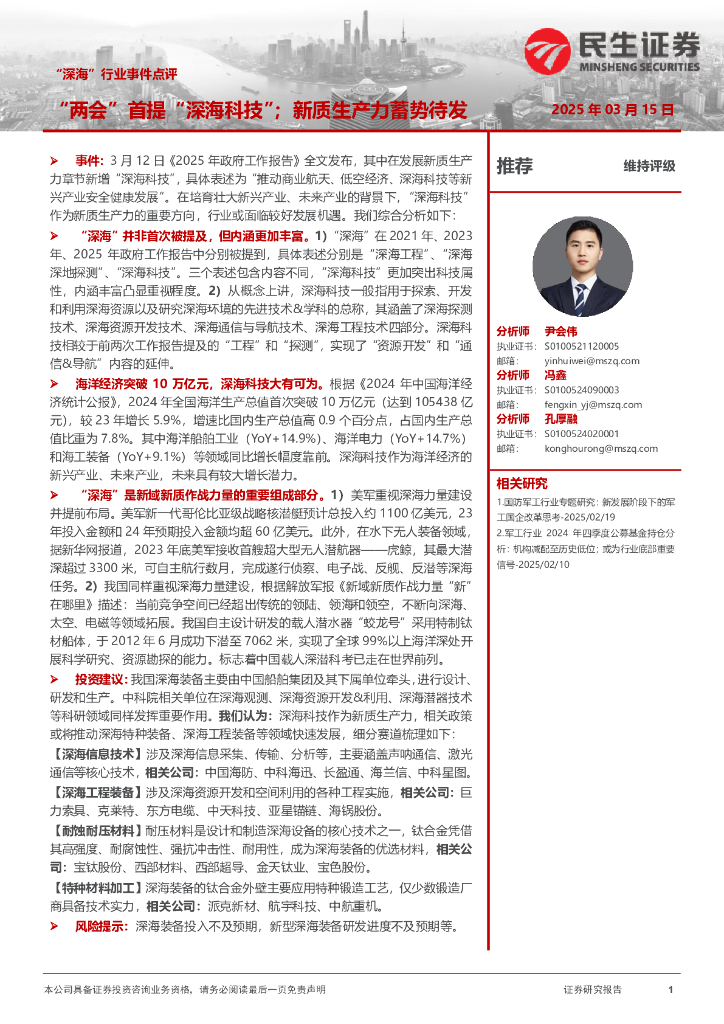 民生证券:“深海”行业事件点评:“两会”首提“深海科技”;新质生产力蓄势待发.pdf