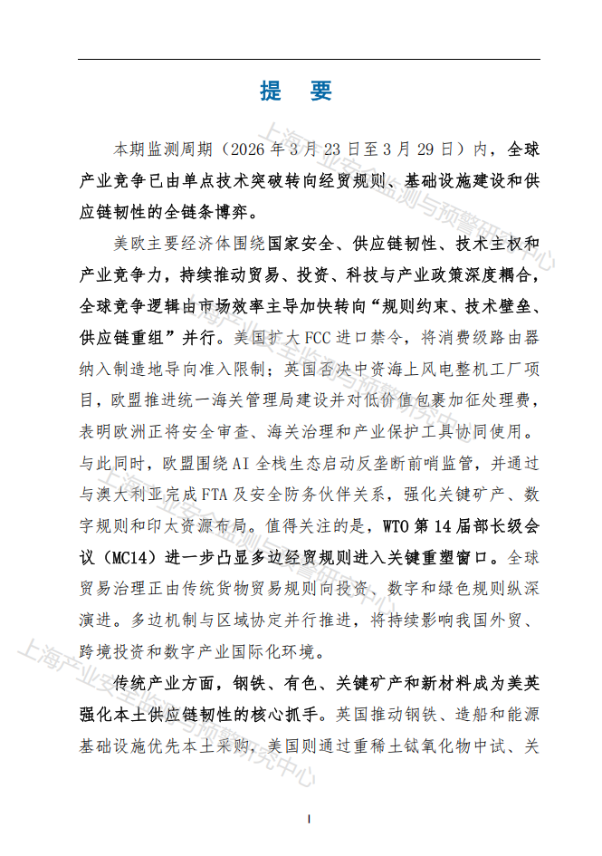 上海产业安全监测与预警研究中心:全球经贸动态与产业安全监测周报(2026.3.23-3.29).pdf