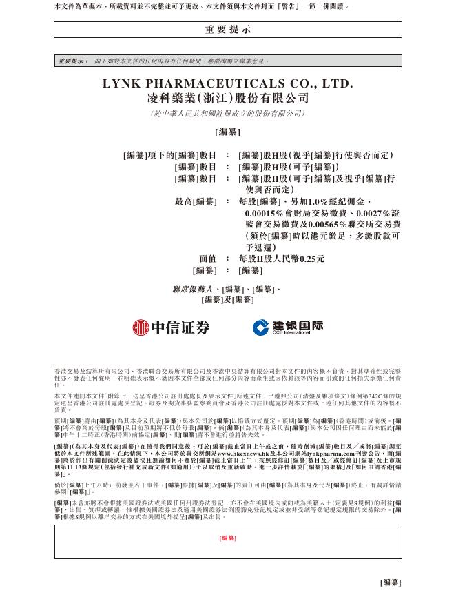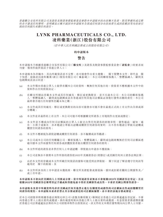 LYNK PHARMACEUTICALS凌科药业(浙江)股份有限公司港交所IPO上市招股说明书.pdf