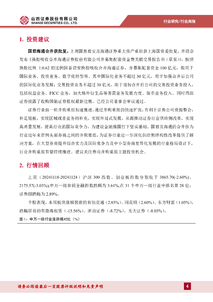 山西证券:非银行金融行业周报:国君海通发布合并草案,行业并购重组再加速.pdf
