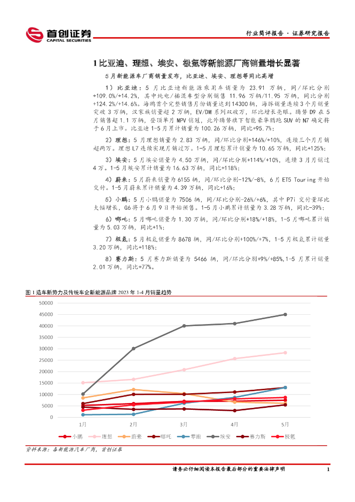 首创证券:汽车行业周报:5月比亚迪、埃安、理想销量持续高增,国常会提出延续新能源车购置减免政策.pdf