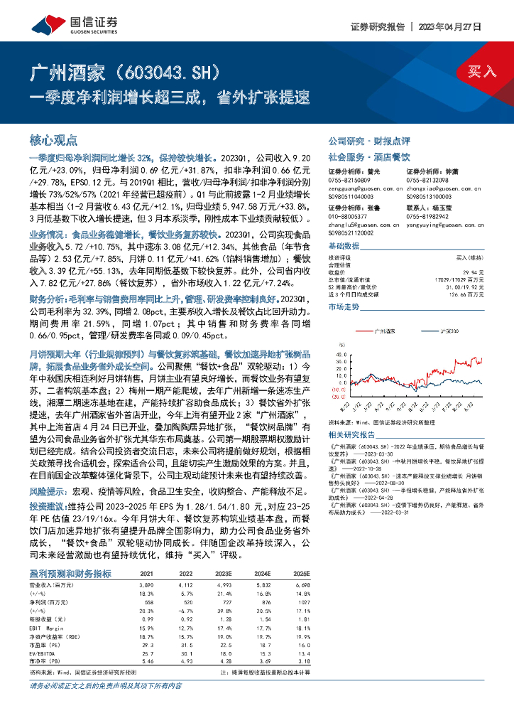 国信证券:广州酒家(603043)-一季度净利润增长超三成,省外扩张提速.pdf
