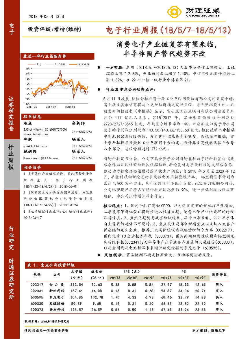 财通证券:电子行业周报:消费电子产业链复苏有望来临,半导体国产替代趋势不改.pdf