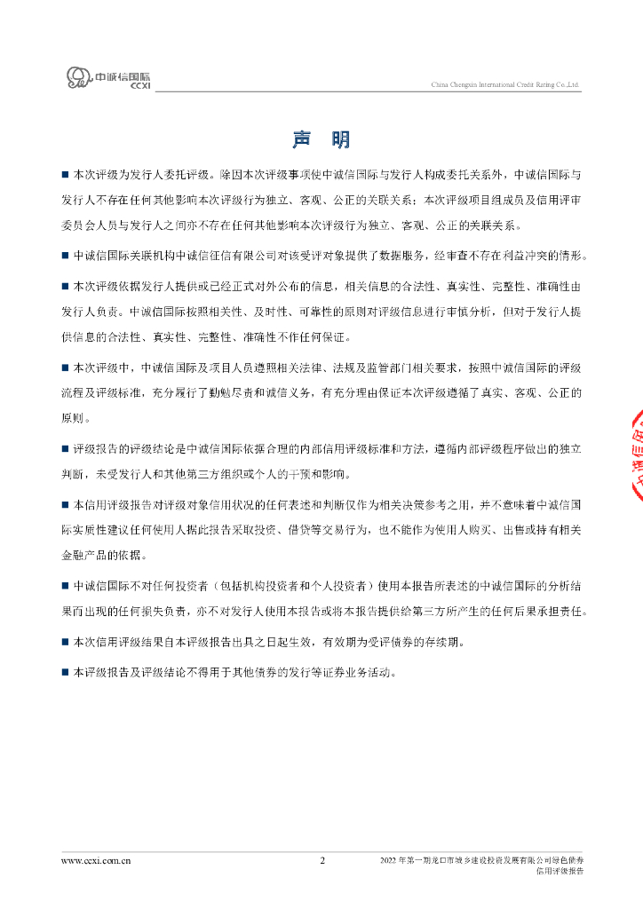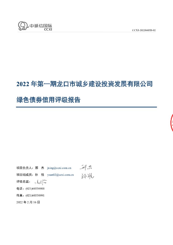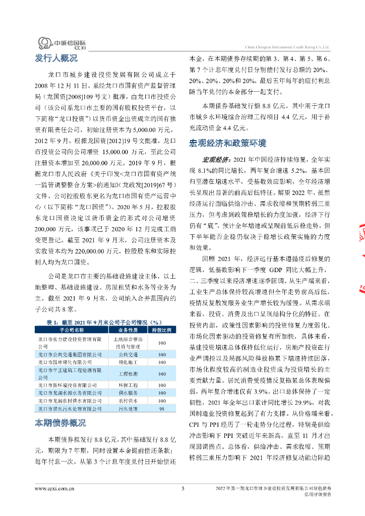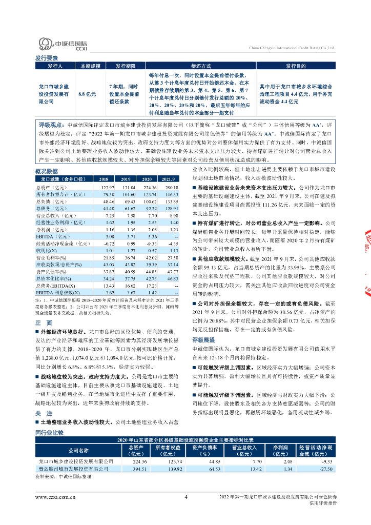中诚信:2022年第一期龙口市城乡建设投资发展有限公司绿色债券信用评级报告.pdf