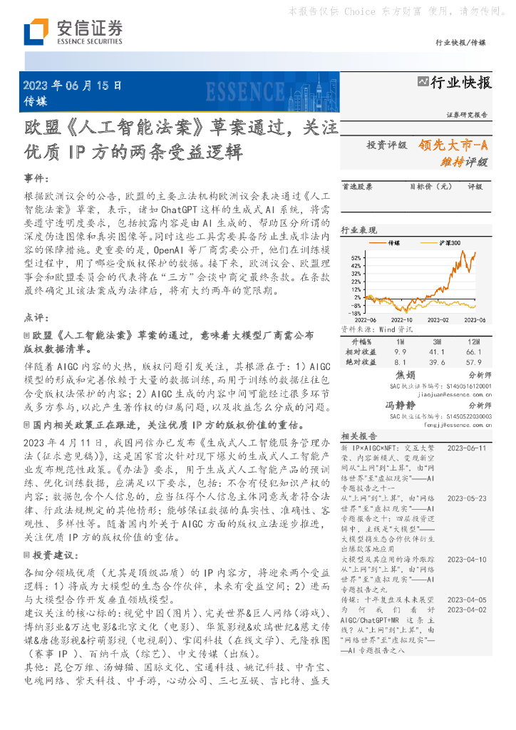 安信证券:传媒:欧盟《人工智能法案》草案通过,关注优质IP方的两条受益逻辑.pdf