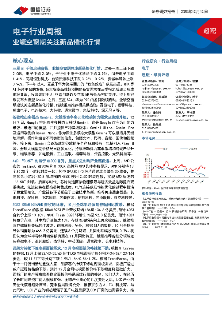 国信证券:电子行业周报:业绩空窗期关注新品催化行情.pdf