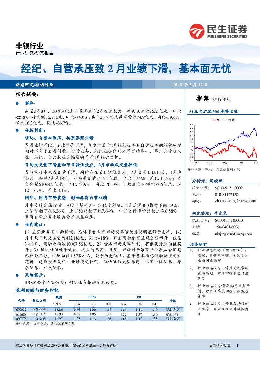 民生证券:非银行业:经纪、自营承压致2月业绩下滑,基本面无忧.pdf