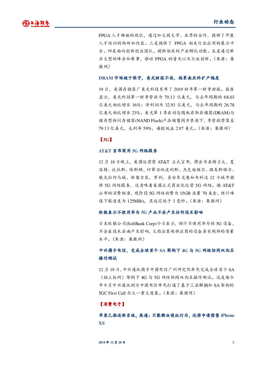 上海证券:电子行业日报:AT&T宣布商用5G网络服务 高通发布LTE调制解调器芯片9205.pdf