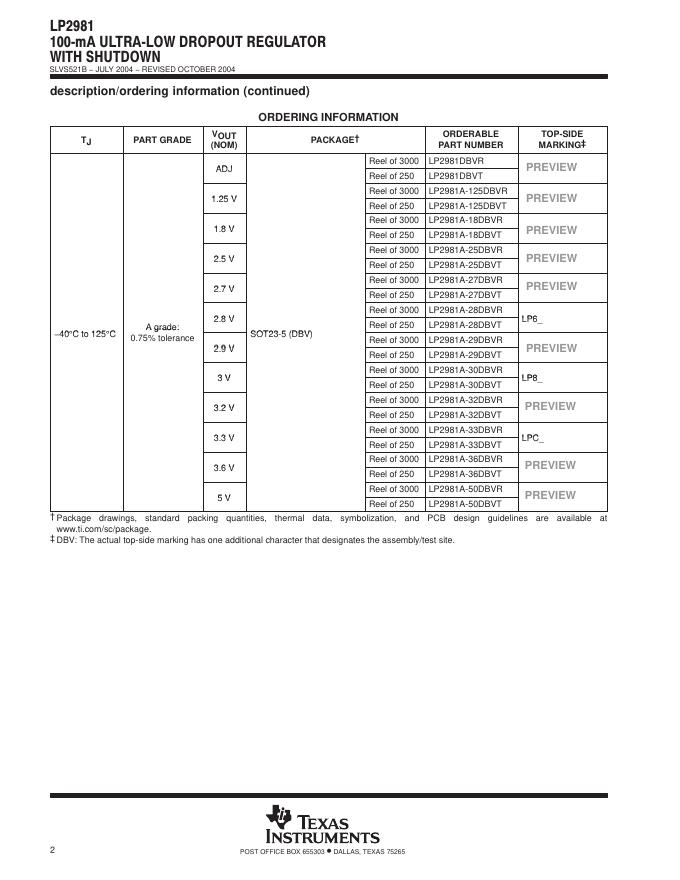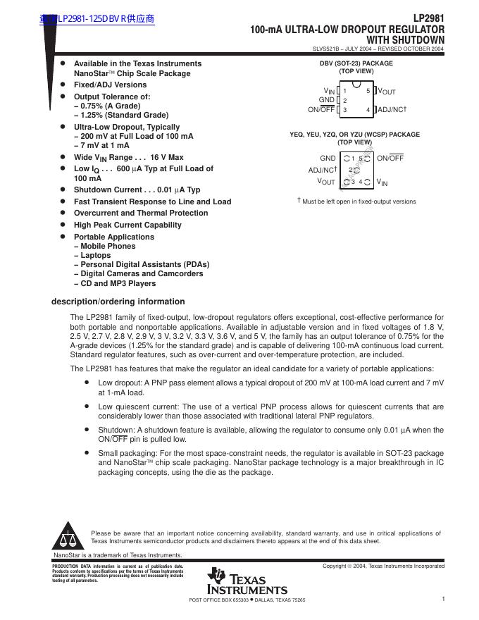 TEXAS INSTRUMENTS LP2981 数据手册.pdf