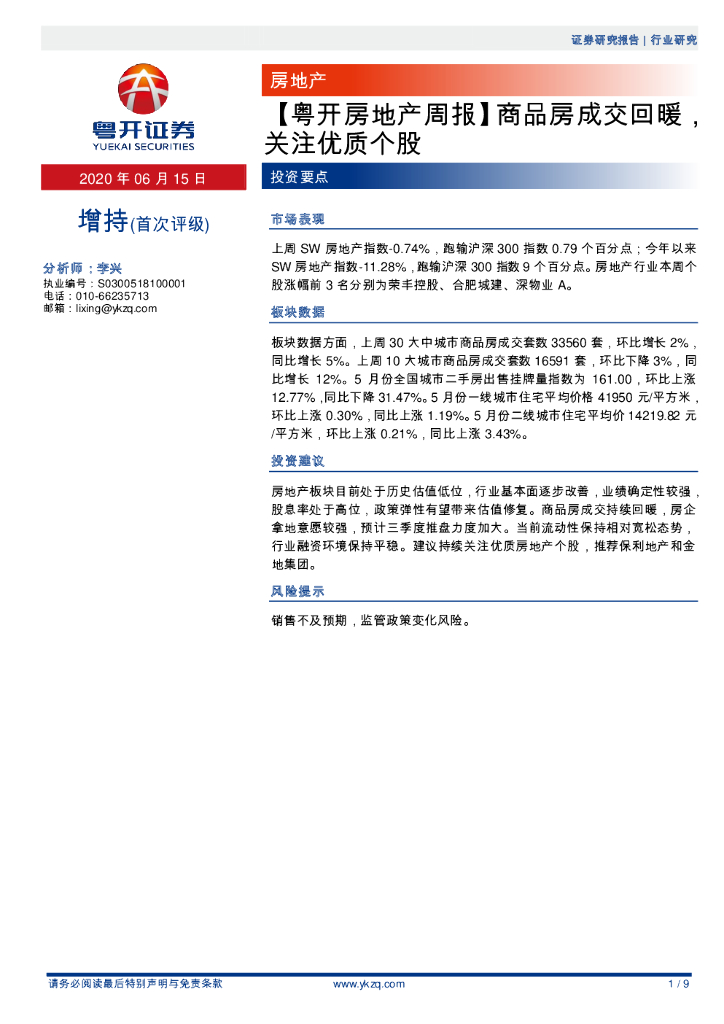 粤开证券:【粤开房地产周报】商品房成交回暖,关注优质个股.pdf