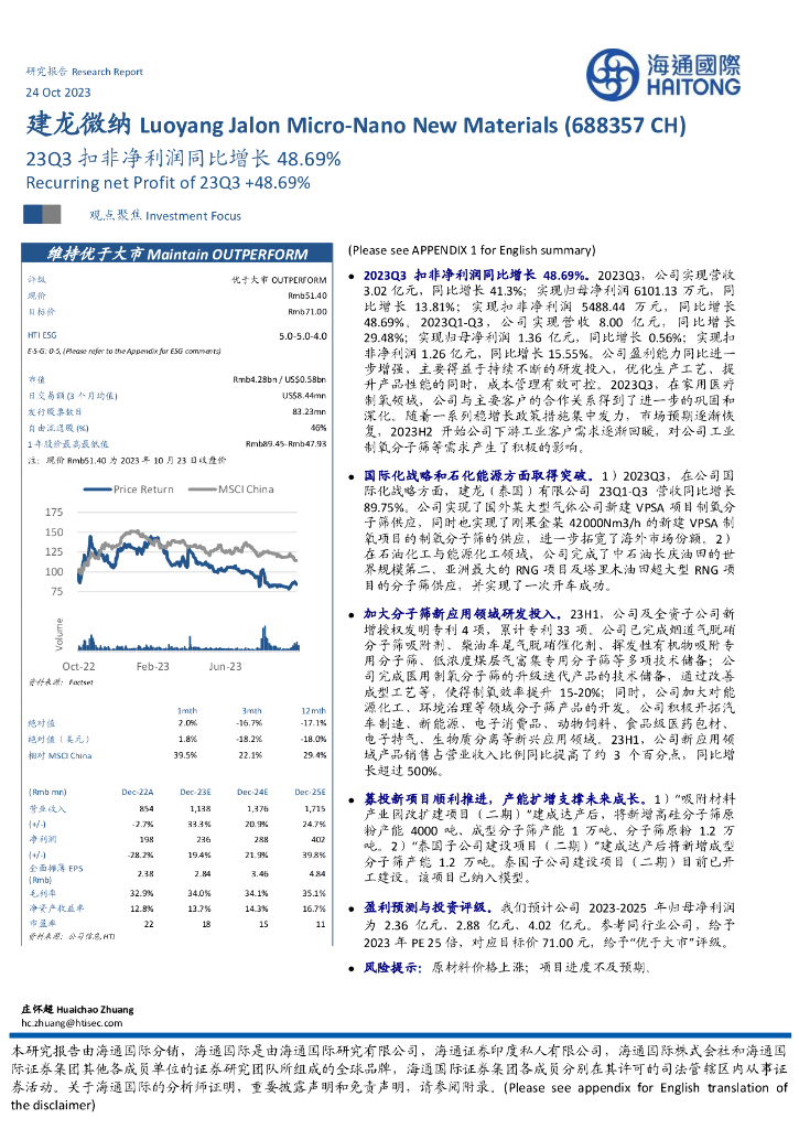 海通国际:建龙微纳(688357)-23Q3扣非净利润同比增长48.69%.pdf