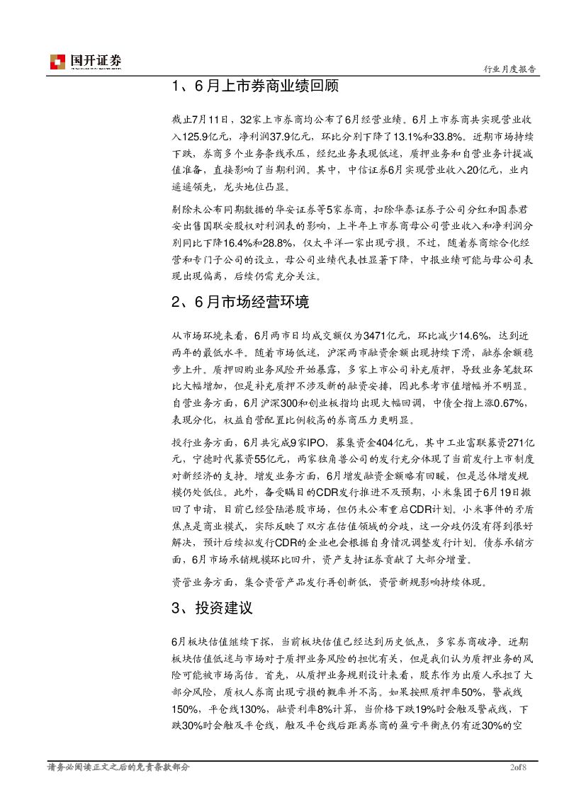 国开证券:证券Ⅱ(073410)行业月度报告:6月业绩环比下滑 理性看待质押风险.pdf