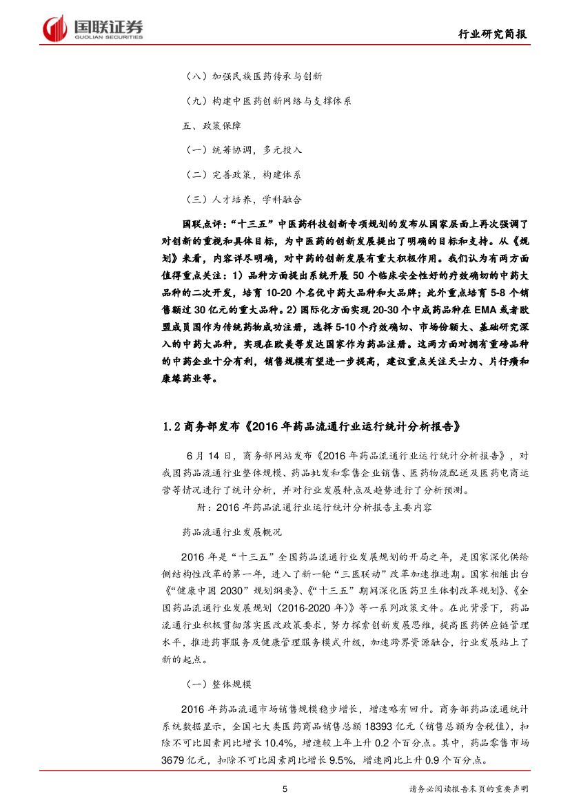 国联证券:医药生物行业研究简报:印发中医药创新规划 药品流通报告发布.pdf