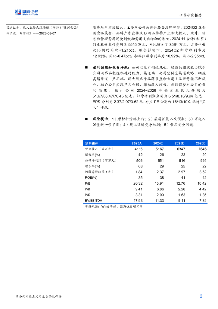 国海证券:盐津铺子(002847)-2024年半年报点评:淡季收入增势延续,品类品牌培育卓有成效.pdf