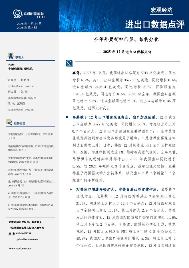 中诚信国际:2025年12月进出口数据点评:全年外贸韧性凸显、结构分化-260119.pdf