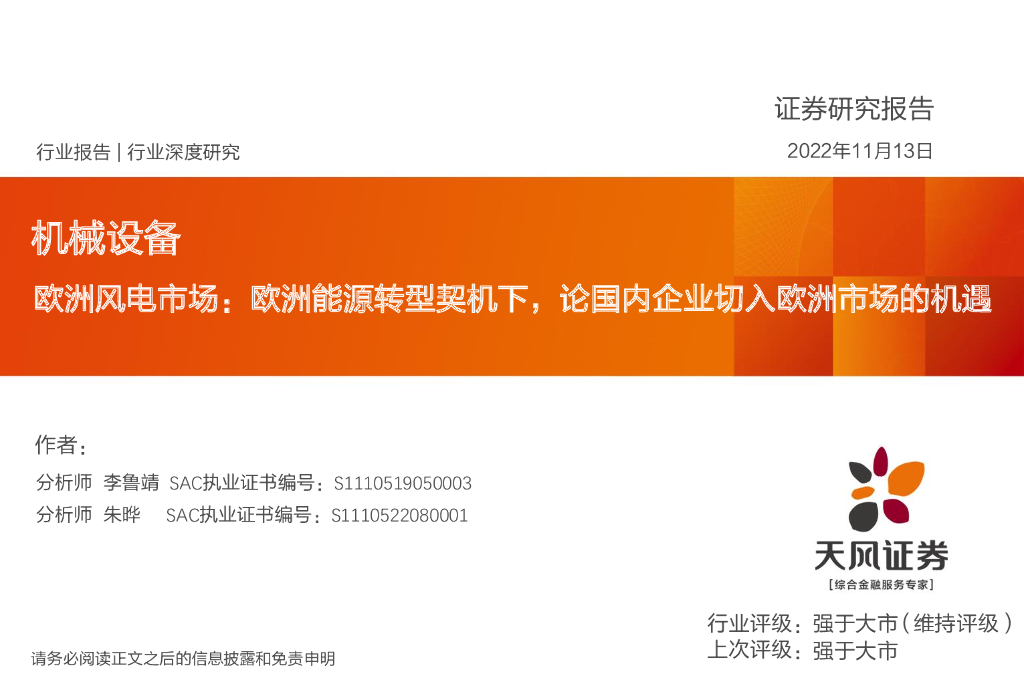 天风证券:机械设备行业深度研究:欧洲风电市场:欧洲能源转型契机下,论国内企业切入欧洲市场的机遇.pdf