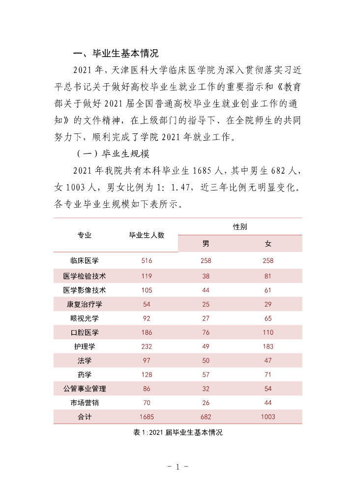 天津医科大学临床医学院2021年毕业生就业质量报告.pdf