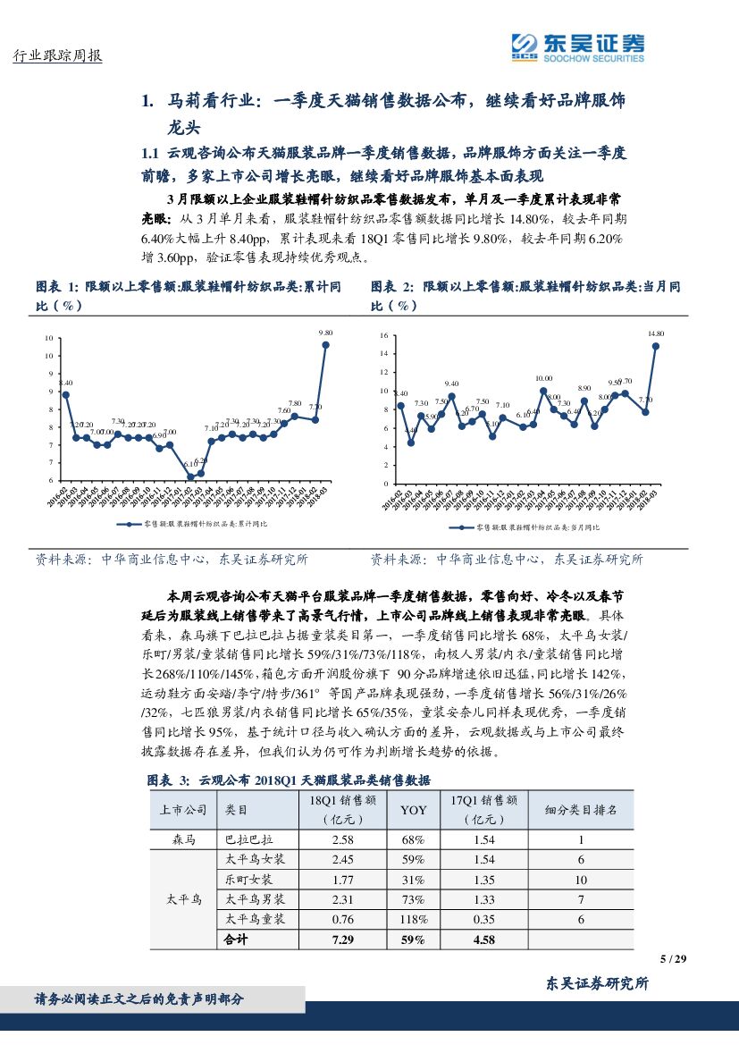 东吴证券:纺织服装:一季度天猫销售数据公布,继续看好品牌服饰龙头.pdf