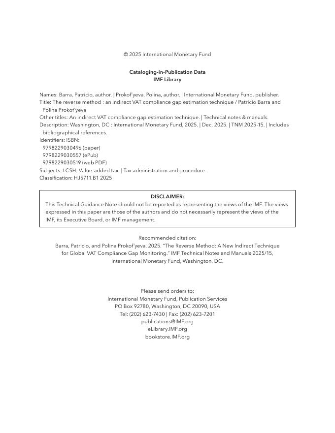 国际货币基金组织:2025年逆向法:一种间接的增值税合规缺口估算技术报告(英文版).pdf
