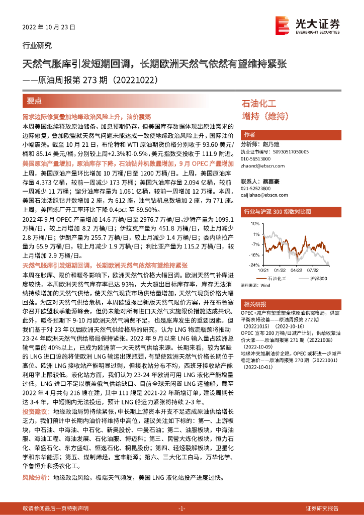 光大证券:石油化工:原油周报第273期:天然气胀库引发短期回调,长期欧洲天然气依然有望维持紧张.pdf