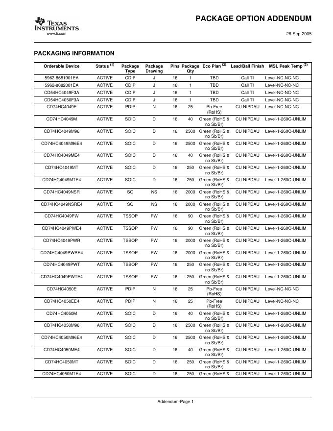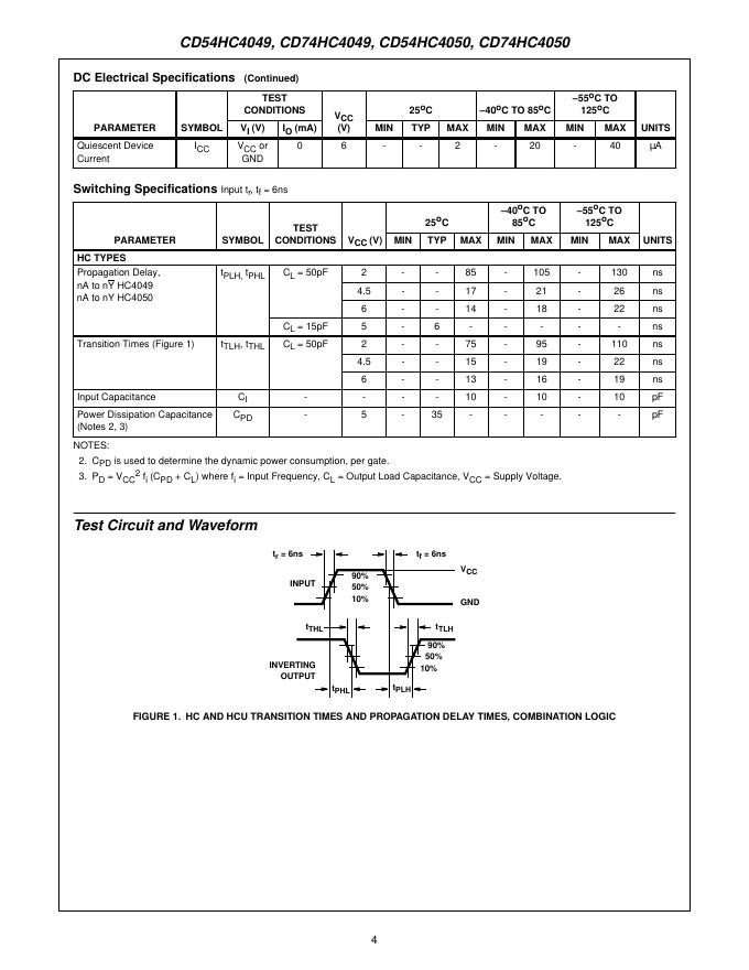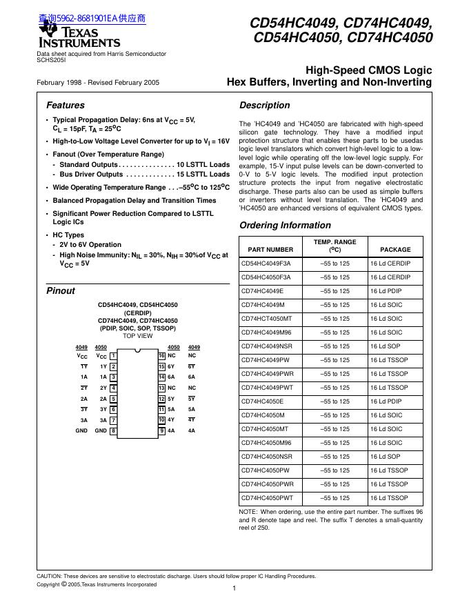 TEXAS INSTRUMENTS CD54HC4049, CD74HC4049, CD54HC4050, CD74HC4050 数据手册.pdf