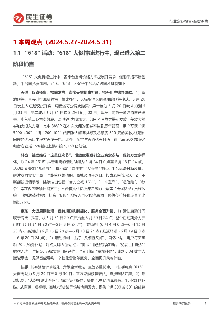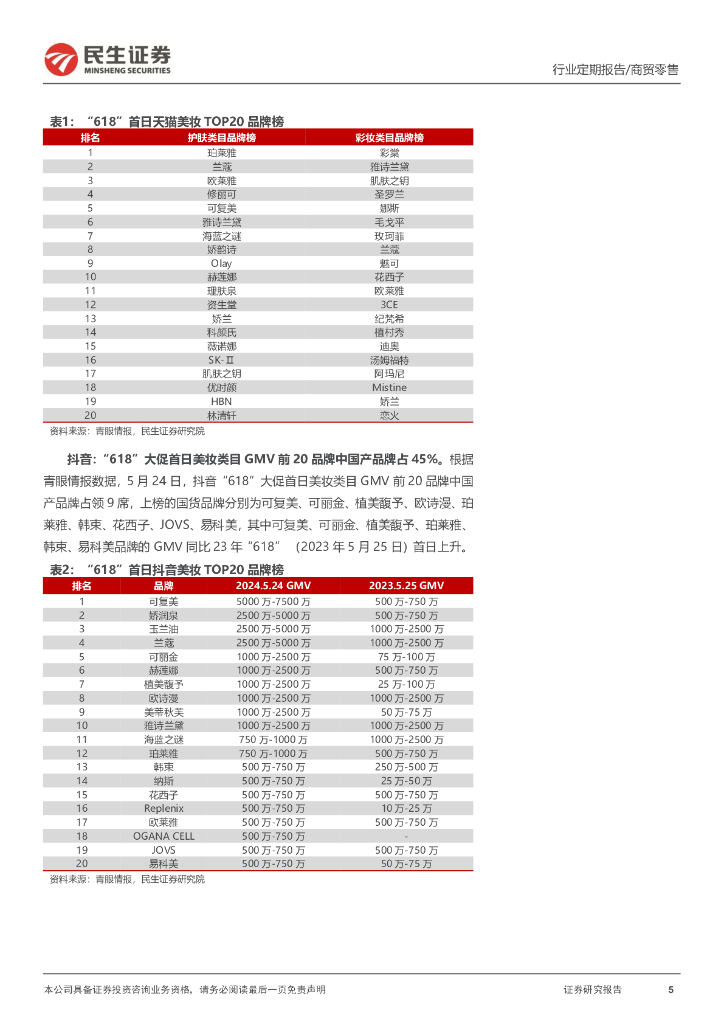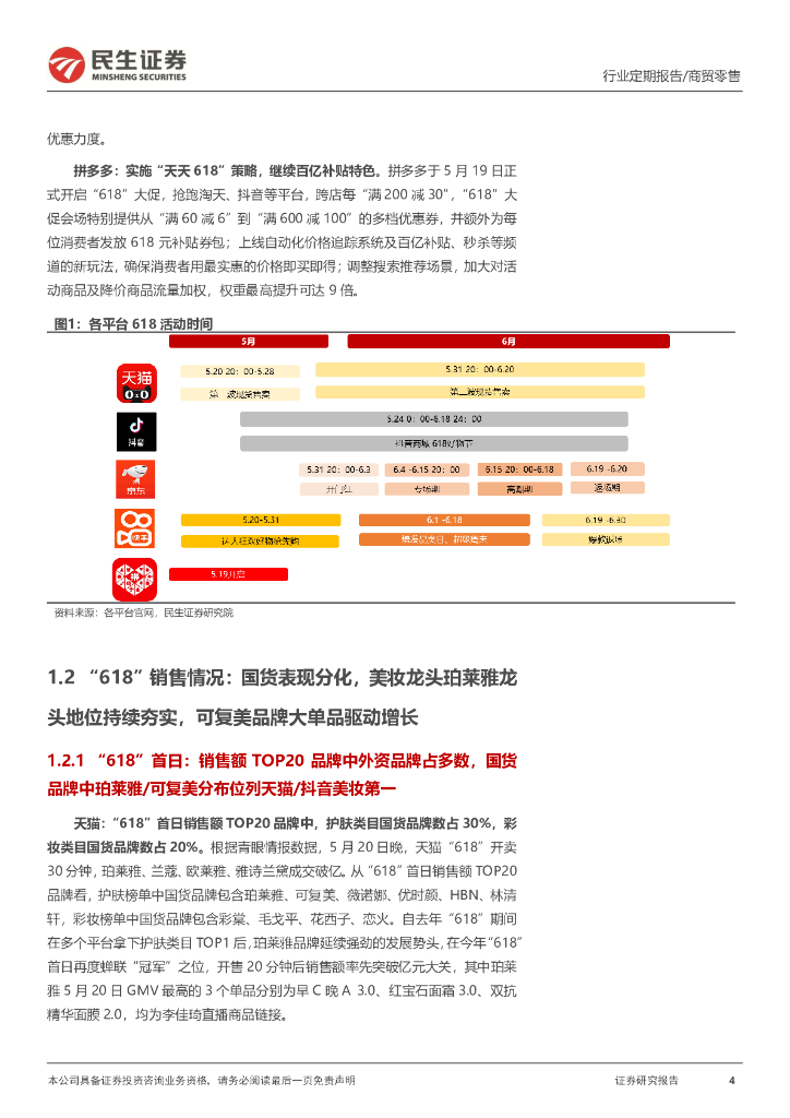 民生证券:零售周观点:“618”第一阶段收官,国货品牌珀莱雅、可复美表现亮眼,关注第二阶段表现.pdf
