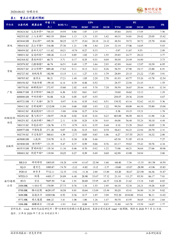 新时代证券:新时代传媒周报:中国游戏2020H1上半年同增22.34%,投资主线游戏视频加速融合.pdf