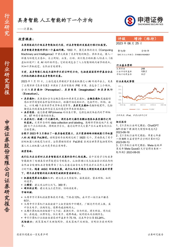 申港证券:计算机行业研究周报:具身智能,人工智能的下一个方向.pdf
