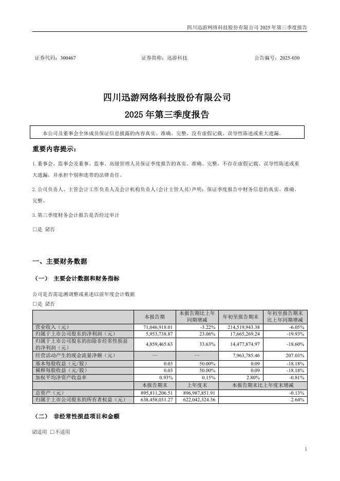 300467-迅游科技:2025年三季度报告.pdf