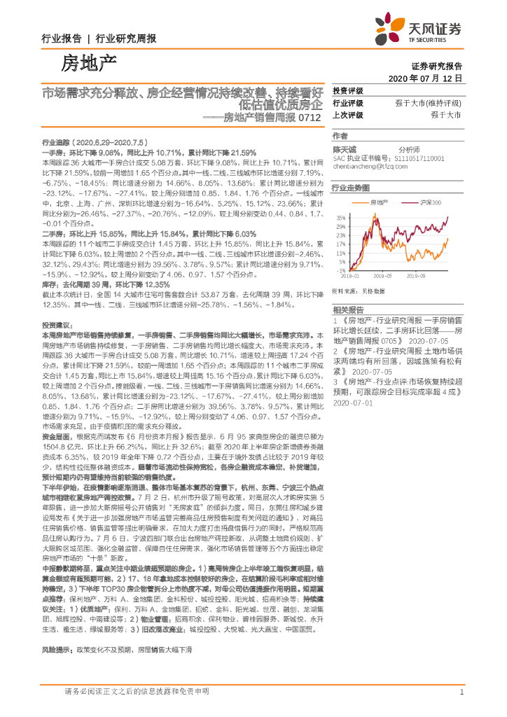 天风证券:房地产销售周报:市场需求充分释放、房企经营情况持续改善、持续看好低估值优质房企.pdf