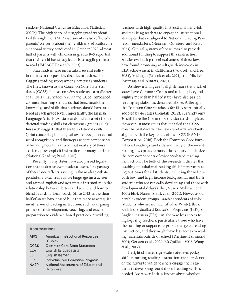 Rand兰德:2024年探索12所学校基础阅读技能教学-2023年美国教学资源调查的结果报告(英文版).pdf