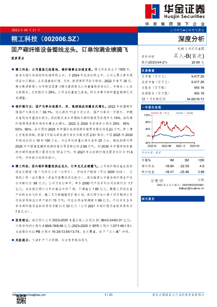 华金证券:精工科技(002006)-国产碳纤维设备整线龙头,订单饱满业绩腾飞.pdf