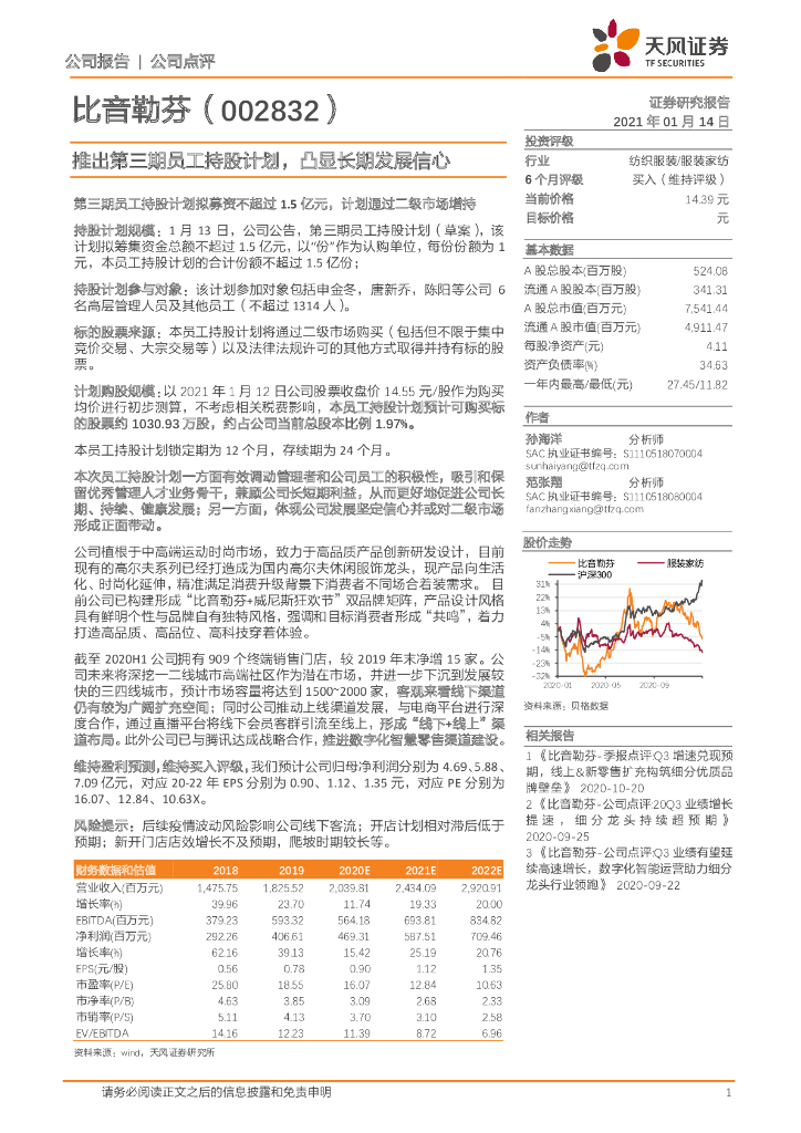 天风证券:比音勒芬(002832)-推出第三期员工持股计划,凸显长期发展信心.pdf