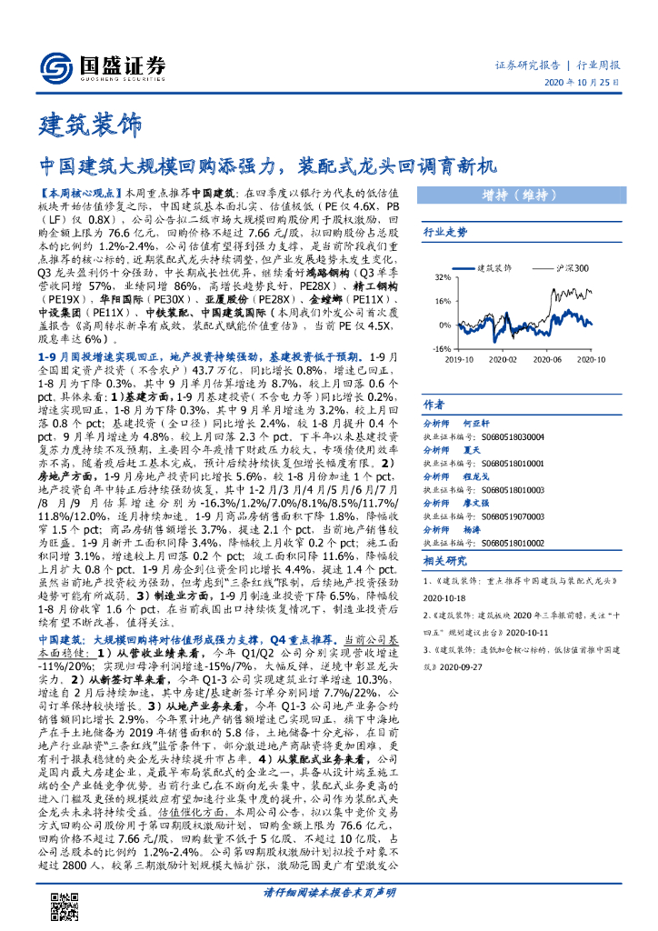 国盛证券:建筑装饰行业周报:中国建筑大规模回购添强力,装配式龙头回调育新机.pdf