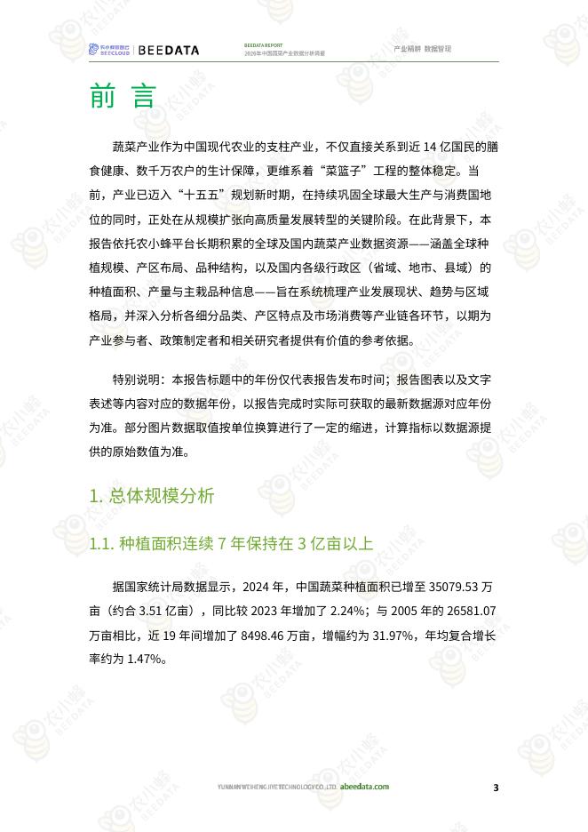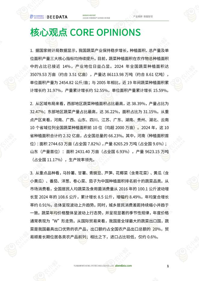 农小蜂:2026年中国蔬菜产业数据分析简报.pdf