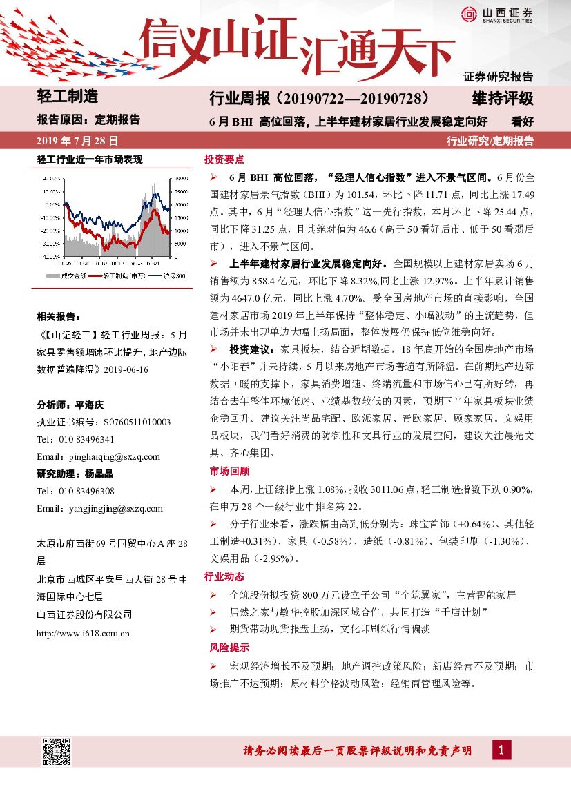 山西证券:轻工制造行业周报:6月BHI高位回落,上半年建材家居行业发展稳定向好.pdf