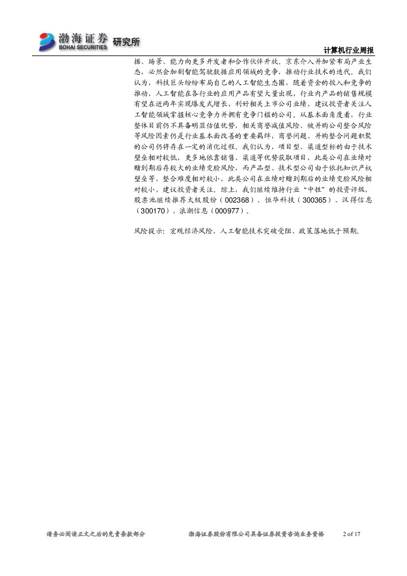 渤海证券:计算机行业周报:行业表现强势,建议优选基本面进行布局.pdf