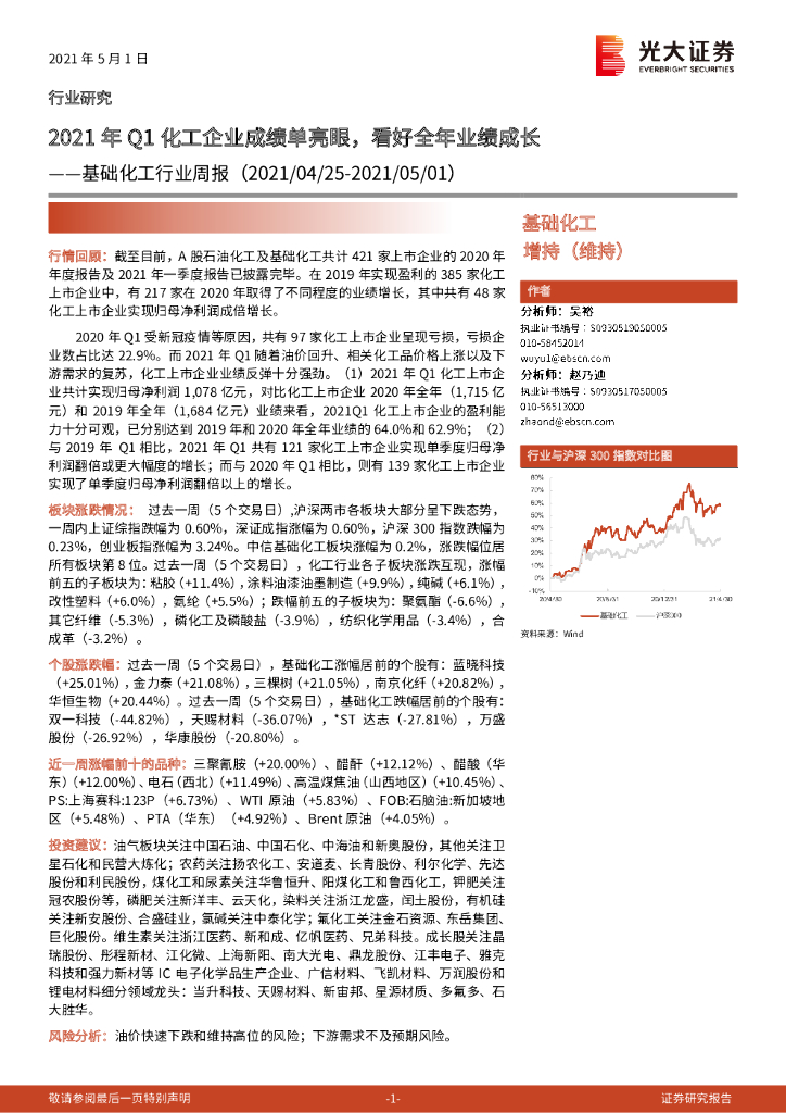 光大证券:基础化工行业周报:2021年Q1化工企业成绩单亮眼,看好全年业绩成长.pdf