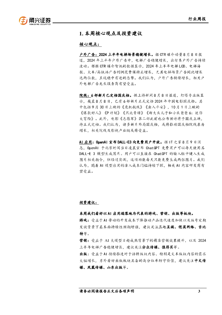 甬兴证券:传媒行业周报:2024上半年电梯场景稳健增长,6部新片已定档国庆档.pdf