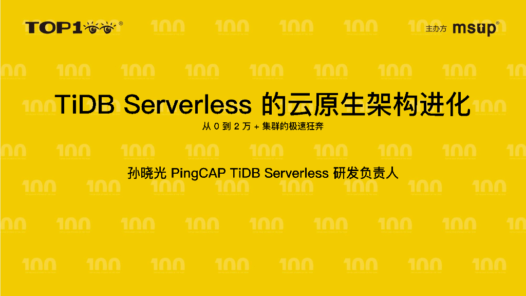 PingCAP(孙晓光):TiDB Serverless的云原生架构进化:从0到2万+集群的极速狂奔.pdf