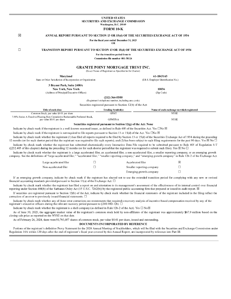 Granite Point Mortgage Trust Inc.(GPMT)2023财年年度报告(英文版).pdf
