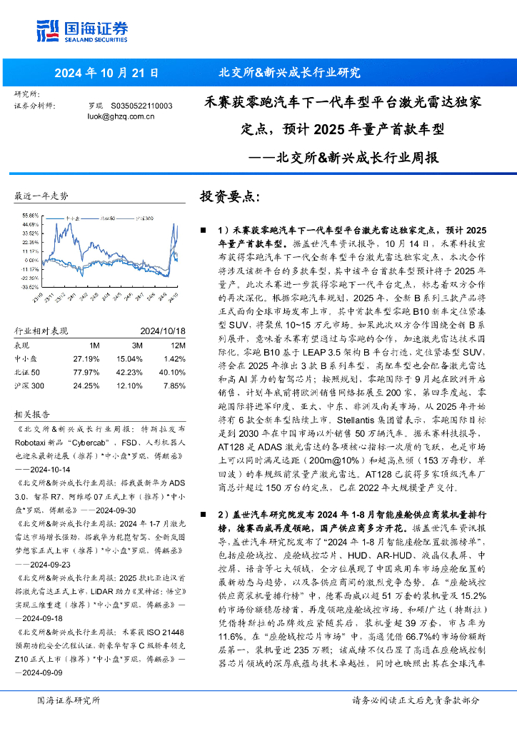 国海证券:北交所&新兴成长行业周报:禾赛获零跑汽车下一代车型平台激光雷达独家定点,预计2025年量产首款车型.pdf