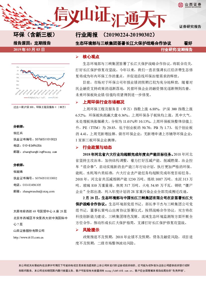 山西证券:环保(含新三板)行业周报:生态环境部与三峡集团签署长江大保护战略合作协议.pdf