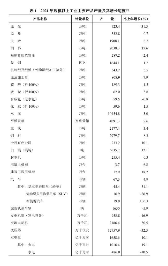 [6]2020年部分产品产量数据进行了核实调整,2021年产量增速按可比口径计算。