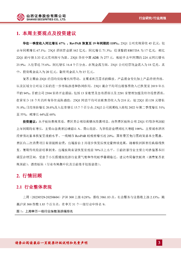 山西证券:消费者服务行业周报:华住23Q1收入同比增长67%,RevPAR恢复至19年同期的118%.pdf